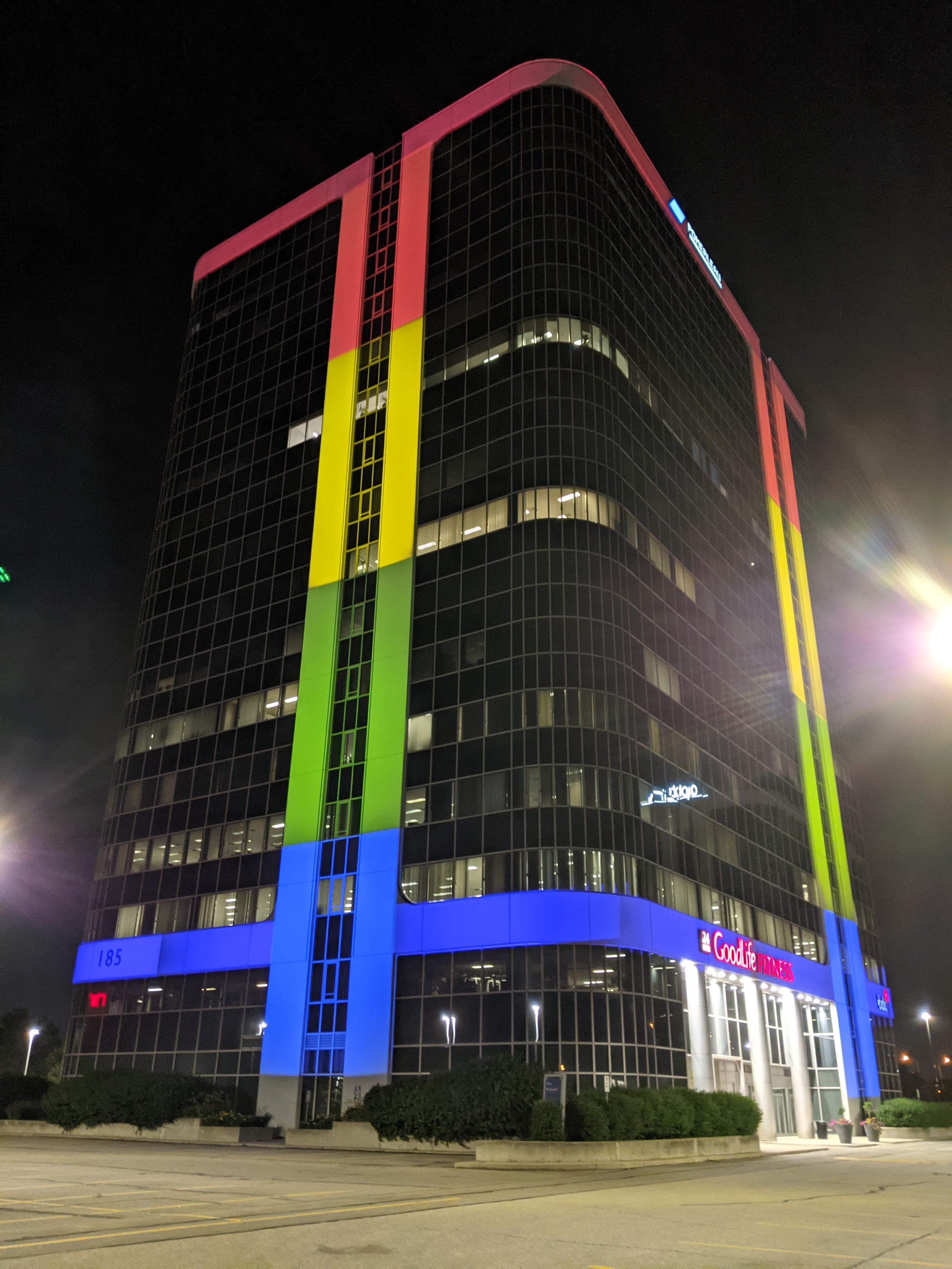 Lighting Design Blue Cross Ontario celebrates Pride 2021 by lighting up their Toronto offices. Mac Viper Performance fixtures achieved this rainbow design Client: Bespoke AV Toronto Like Loading... Related